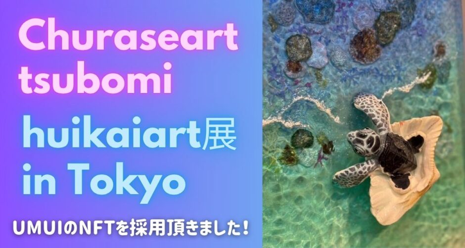 その中で、UMUIでは、そのChuraseart tsubomiさんのこれまでの実績やアート作品、実際の動画などを、消えないデータフルオンチェーンNFTという最先端技術で保存し、なおかつ、今回の展示作品にチップを埋め込み、展示会の来場者の方々にアート作品をご覧いただくとともに、沖縄の海やChuraseart tsubomiさんの想いをスマートフォンを通して、NFTを閲覧できるという新しい取り組みを体験していただきました。