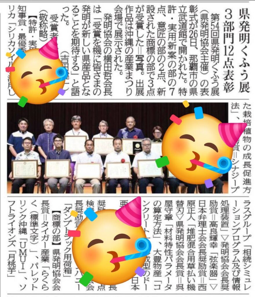 最終日に、表彰式がありました☺️沖縄県発明協会会長賞を受賞しました。