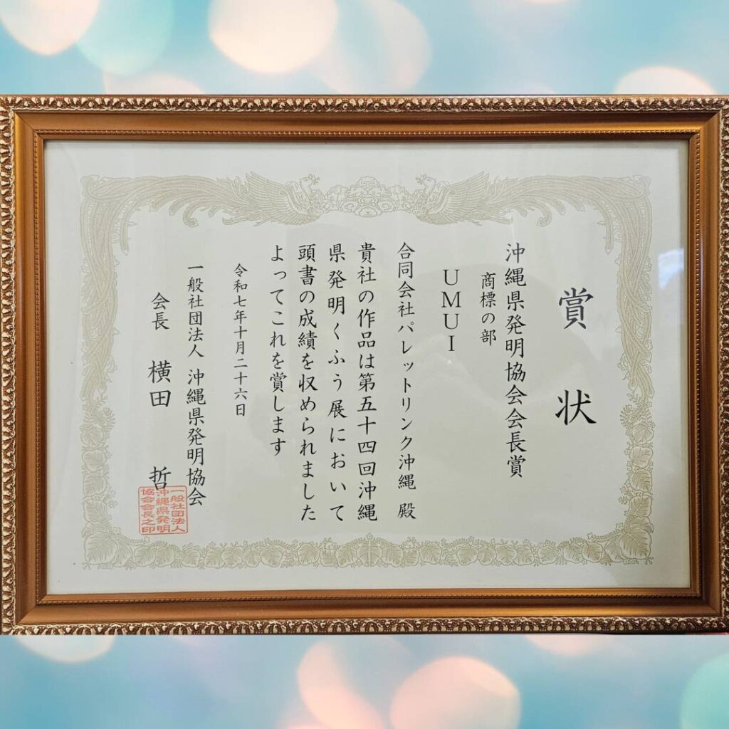 商標部門のプレゼン審査では、「UMUI」のロゴマークと商品サービス内容、ストーリー性、将来性、沖縄県の産業振興への期待性が評価され、沖縄県発明協会会長賞を受賞致しました☺️